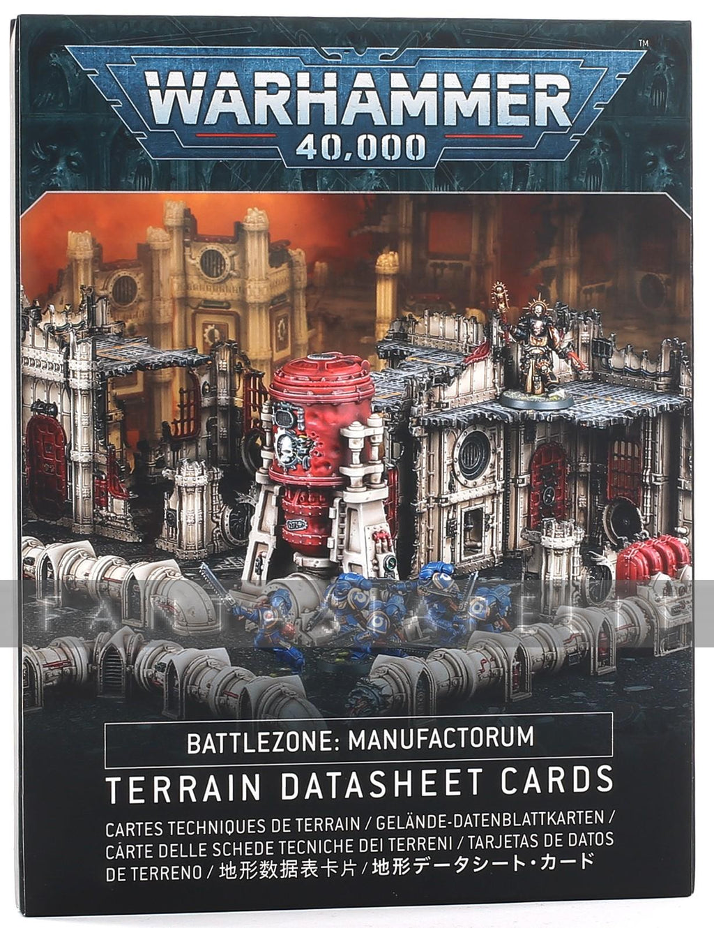 This pack includes 22 cards contained in an open-topped sleeve, with matt lamination and a thumb-cut on the backside of the sleeve to aid with card removal. Each card provides a Terrain or Tactical Terrain datasheet card, or a Manufactorum rules card, designed to work alongside the Tactical Deployment Mission Pack for easy reference.